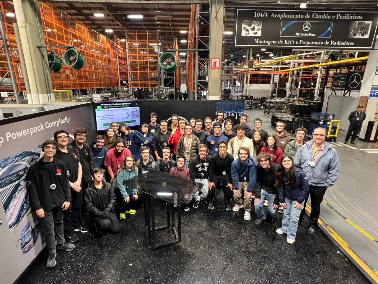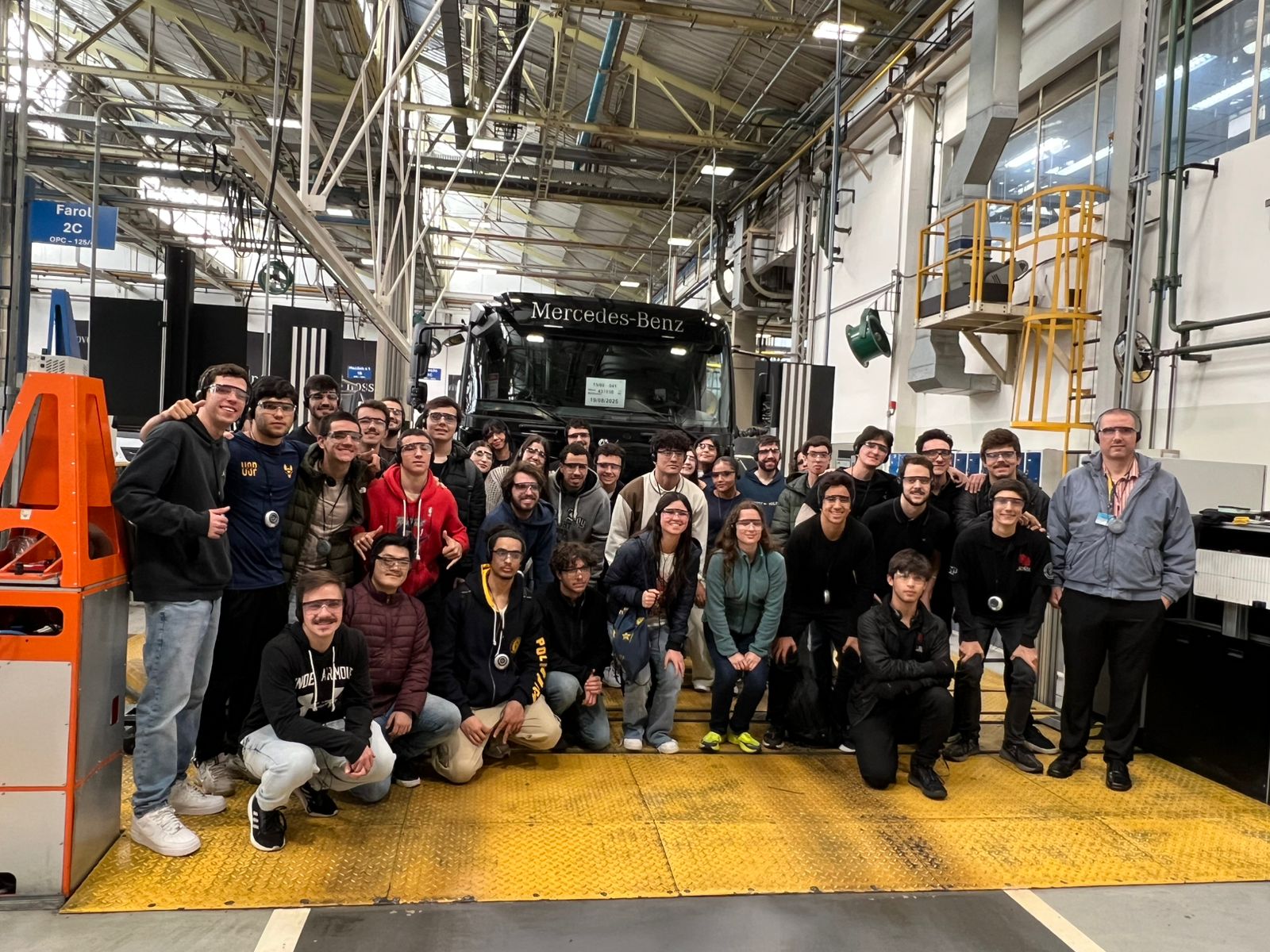 Ele acrescentou: “A visita à Mercedes-Benz do Brasil foi uma experiência enriquecedora para todos. Como professor, pude ilustrar a integração entre a sala de aula e a indústria, quebrando a separação ilusória entre teoria e prática. Os alunos testemunharam a teoria sendo literalmente aplicada”.