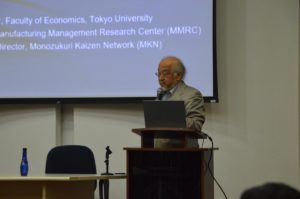 Na sequência, o Prof. Dr. Takahiro Fujimoto apresentou a palestra Competing in the Sky and on the Ground – Logic Behind Industrie 4.0, IoT and Connected Car e respondeu às várias perguntas da plateia. O Prof. Dr. Ugo Ibusuki, da UFABC, e o Prof. Dr. Marcelo Alves, do CEA, foram o moderador e o debatedor, respectivamente.